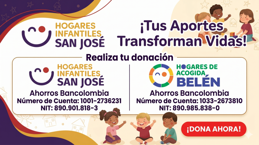 En Hogares Infantiles San José, nuestra mayor fuerza es la solidaridad. Como institución sin ánimo de lucro, funcionamos gracias al corazón generoso de personas como tú, que creen que el origen de un niño no debe definir su destino.